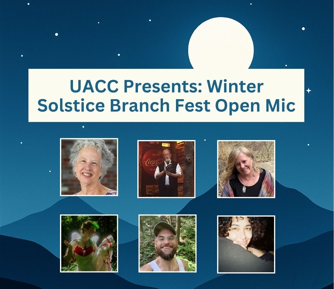 The crossover of themes and artistic vision that centers on the Winter Solstice could not be more perfect for this event. Historically, the Solstice celebration has been one that is deeply tied to the natural world as we mark the end of one cycle and the beginning of the new. Many of the featured artists with Place Keepers are also deeply involved in Woven Branches projects that focus on environmental issues and ideas, inspired in part by their conservation work which has also fed into their creative work. That these themes are also inextricably linked to themes of family and kinship adds yet another layer of meaning to the kind of evening we have in store. UACC core member and the main force behind Place Keepers, Sherry Cook Stanforth said, “While we can’t have a bonfire in our cherished downtown library, we’ll hope to create the spirit of coming together from our corners for a ‘branches out’ happening that express appreciation for home places through creative performances and nature-arts, shared food, and the celebration of community heritage.” The branching out of family, kith and kin, and the natural world will all converge in poetry, music, and food.